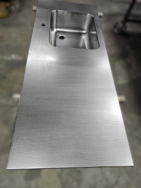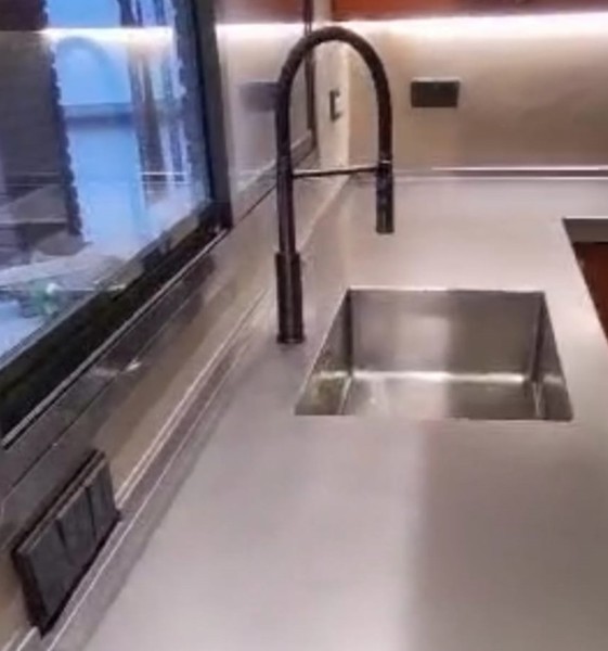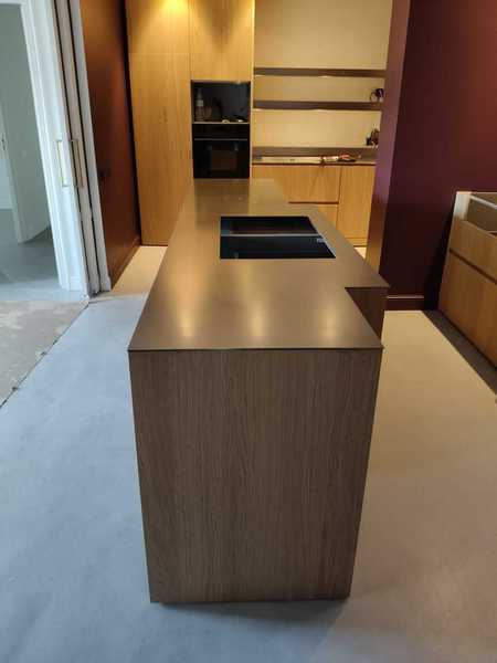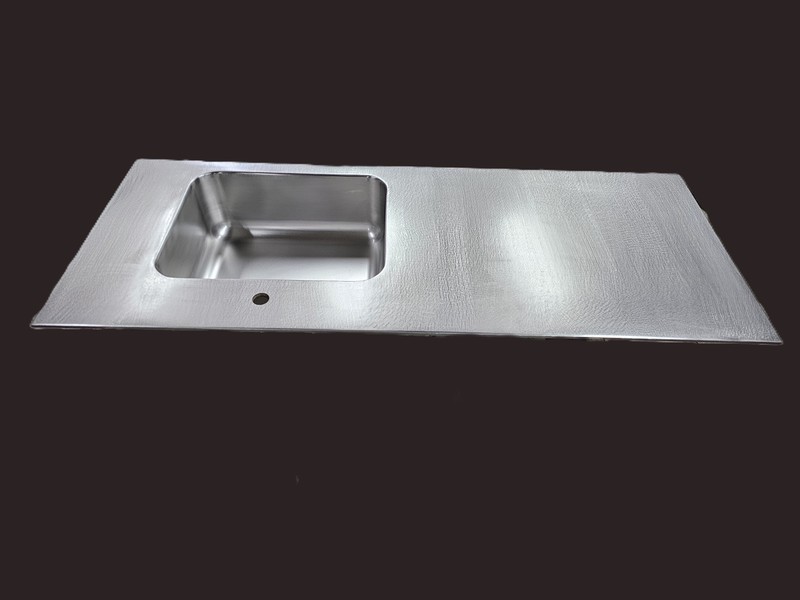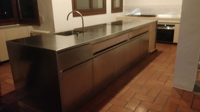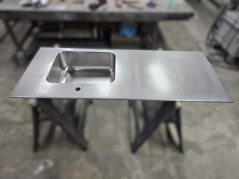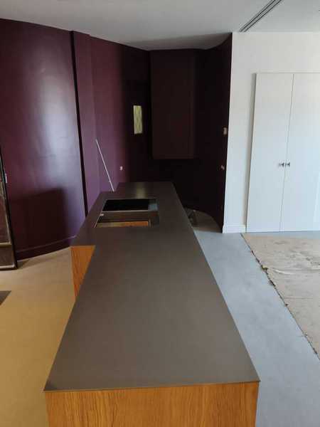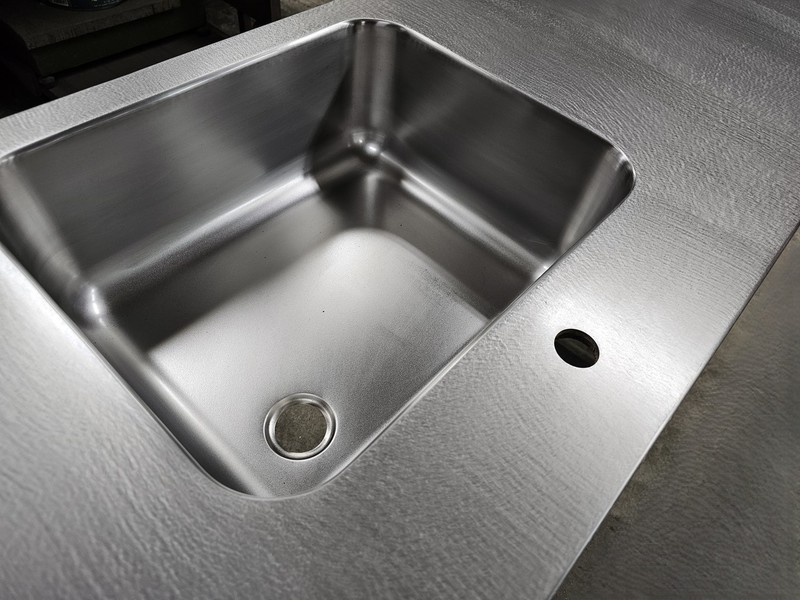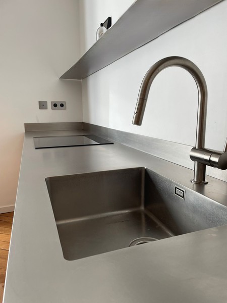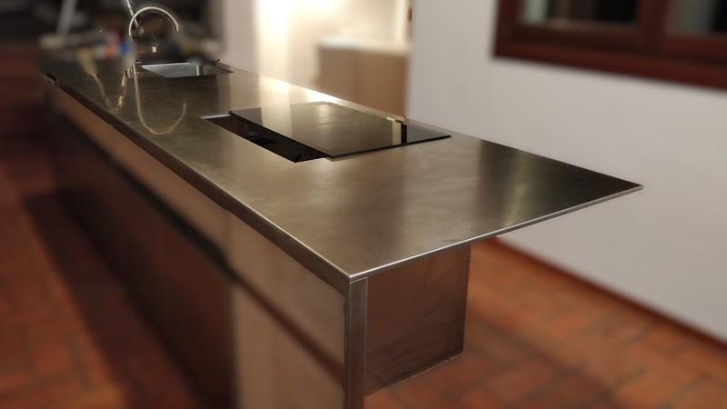 Minimalista encimera exclusiva, de acero inoxidable de 1 cm de grosor.