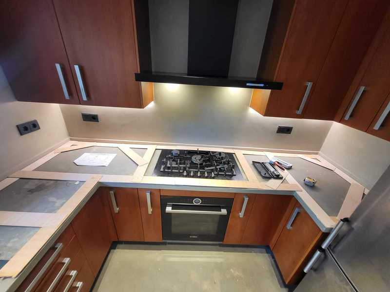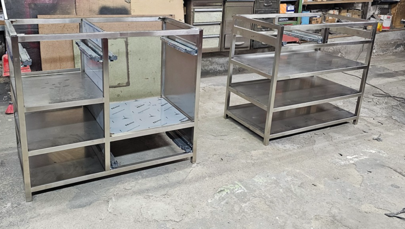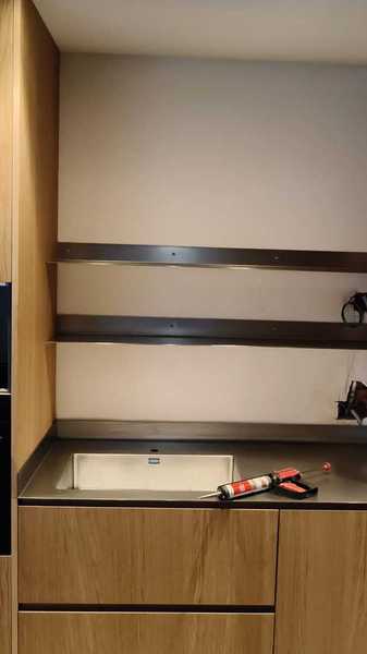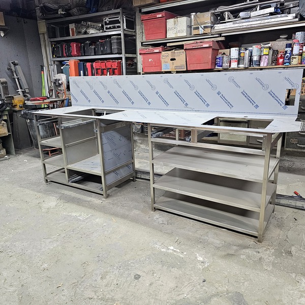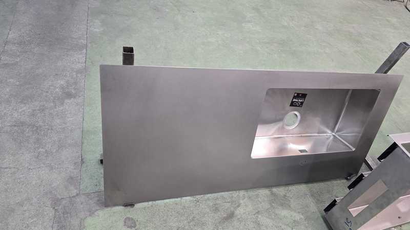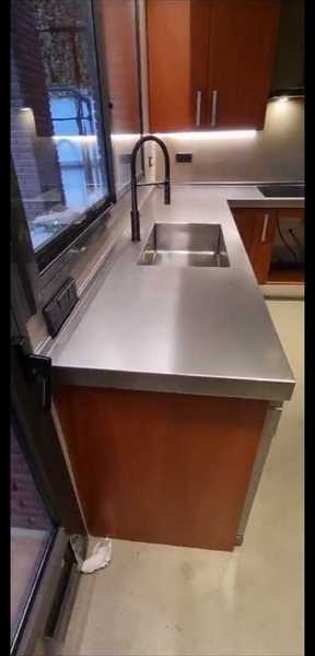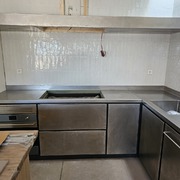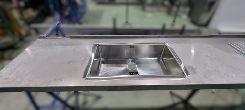 A continuación en estas imágenes, podemos ver como es posible realizar unas encimeras de acero inoxidable, con fregaderos soldados de forma artesanal, consiguiendo resultados de gran calidad y aprovechando muy bien cada centímetro de su cocina.