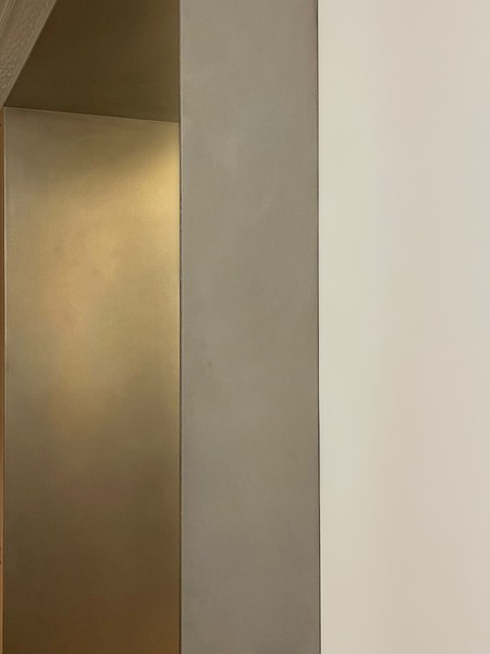 Se compone de tres piezas a diferente nivel, sujetas mediante anclaje oculto.