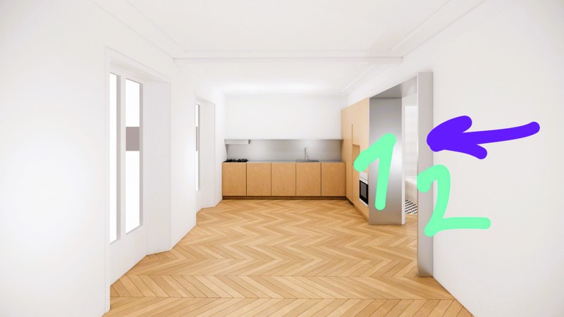 Una de ellas ocupa espacio en dos habitaciones unidas entre ellas por un pasa platos de grandes dimensiones.