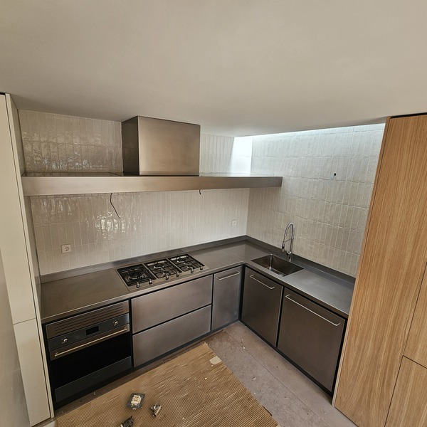 Cocina de estilo Japonés fabricada en acero inoxidable y madera de abedul, fue diseñada por sus propietarios Josep y Bettina una pareja fantástica! La vivienda está ubicada en una zona preciosa de Barcelona en el popular "Barri de Gràcia" os tengo que felicitar no solo por la preciosa cocina, y por el maravilloso ambiente que habéis conseguido darle a vuestra nueva casa , también por el trato tan amable y la libertad para ejecutar el proyecto que nos habéis brindado.