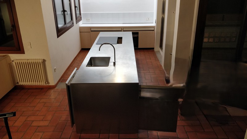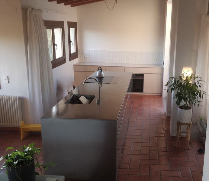 En la cocina tenemos una enorme isla de acero inoxidable de más de 4 mt. largo por 1.40 mt. ancho